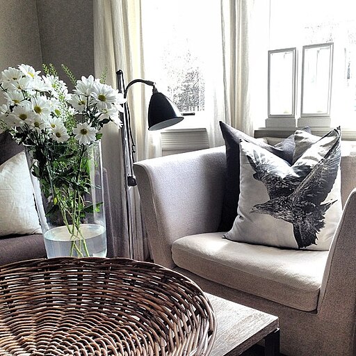 Cozy armchair beside a lamp and flowers, a comfortable routine spot – Wicker Paradise from New Rochelle, United States, CC BY 2.0, via Wikimedia Commons